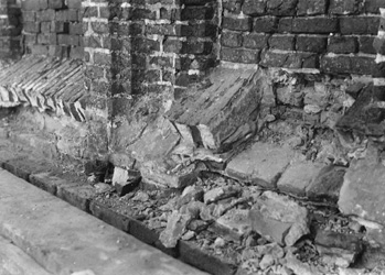 aanwijzing van de architecten overgegaan tot het aanbrengen van stutten om instorting van de kap en muurgedeelten te voorkomen.