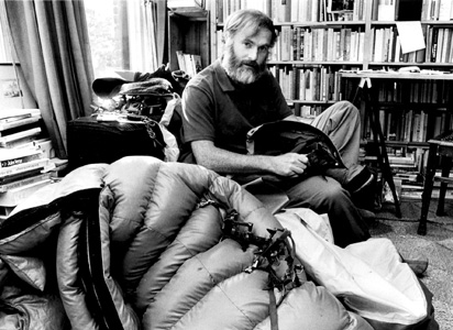 Walter Roos met zijn uitrusting, klaar voor vertrek naar Nepal.