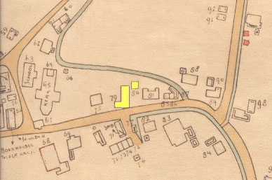 Hieronder een plattegrond uit het jaar 1918 waarop het woon- winkelpand en de schuur staan ingetekend.